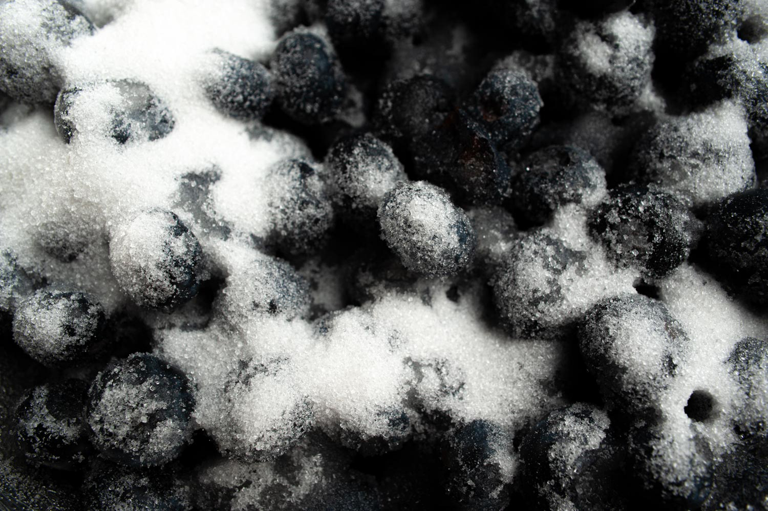 Mescolate lo zucchero con i mirtilli e aggiungeteli alla torta.